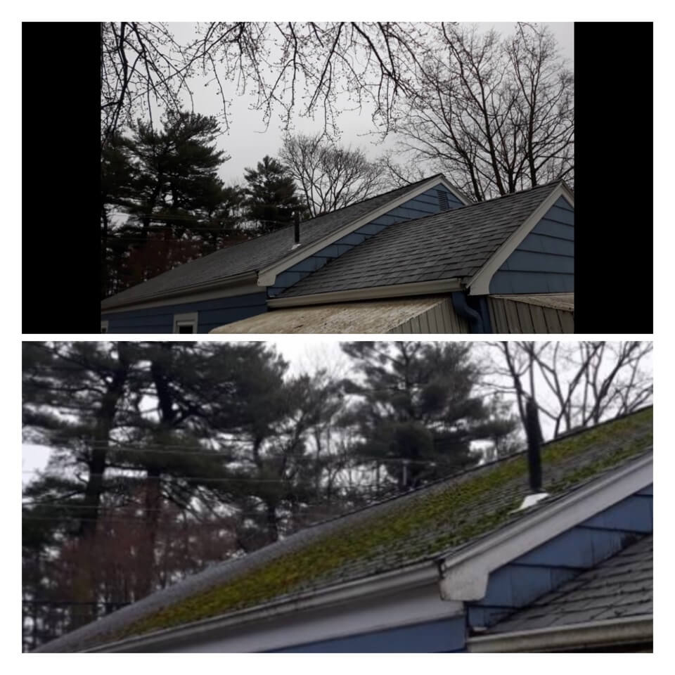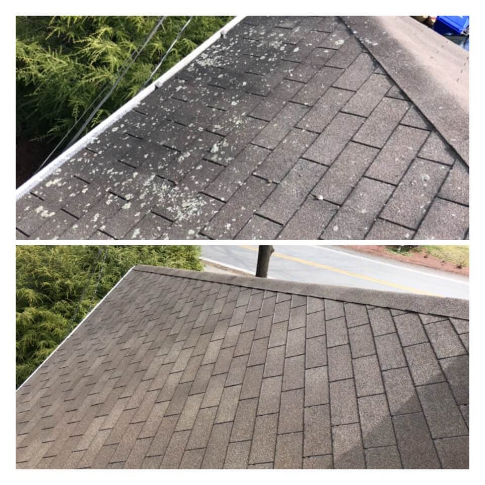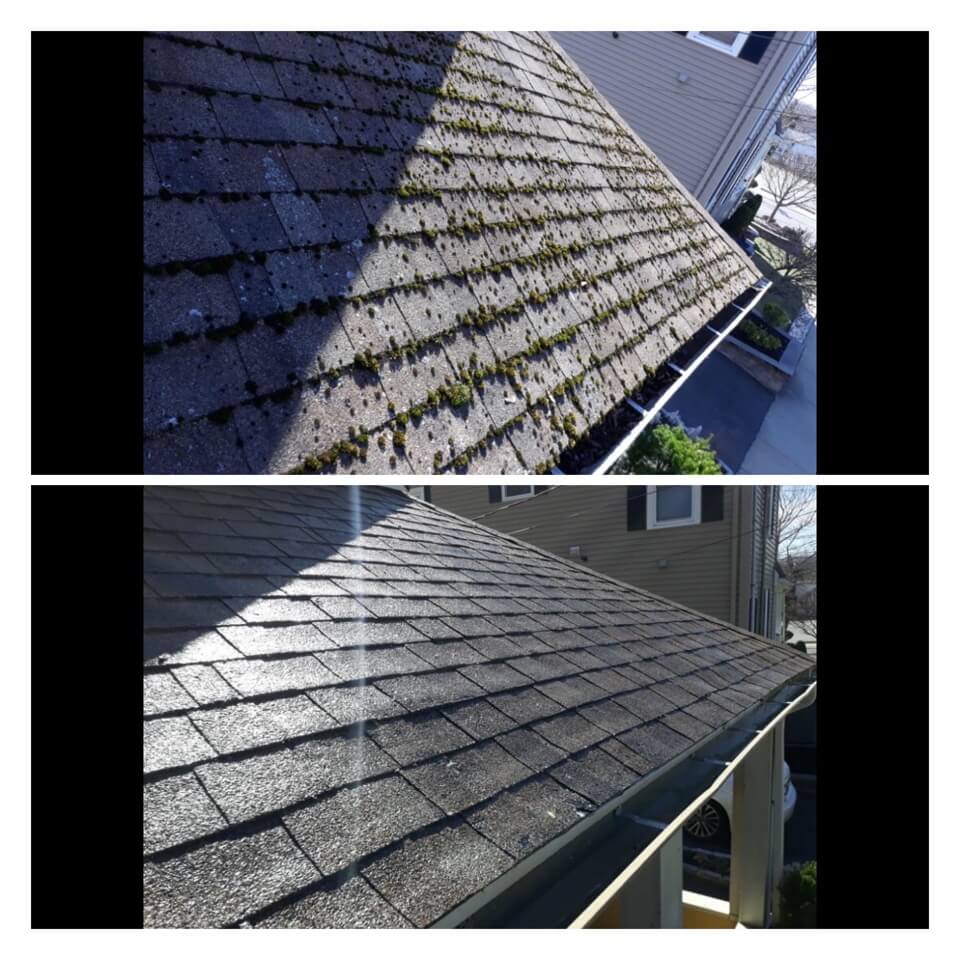 HiCleaners is the most experienced company in Ayer, MA that deals with roof washing and roof soft washing. All of our employees are trained to recognize precise solution mixing ratios to provide you with the safest and most effective soft washing service. Roofs are a commonly neglected part of a house due to the fact that most people don’t have ladders to access it, so it is very easy to just leave it alone and forget about problems that may start to arise. Just like many home owners, discoloration and small bits of moss on a roof can be overlooked because of the misconception that it is just aesthetic. However, it isn’t just aesthetic, the moss slowly lifts the granules off the shingles which in turn shorten the life of the shingle. The moss also spreads, just like any bacteria if it is left alone for too long, it can quickly become a problem that spirals out of control. Call HiCleaners for a free quote, we only use the most advanced eco-friendly solutions and equipment to make sure the job is done right, for the safety of the employees, your plants, grass, pets, and children.
