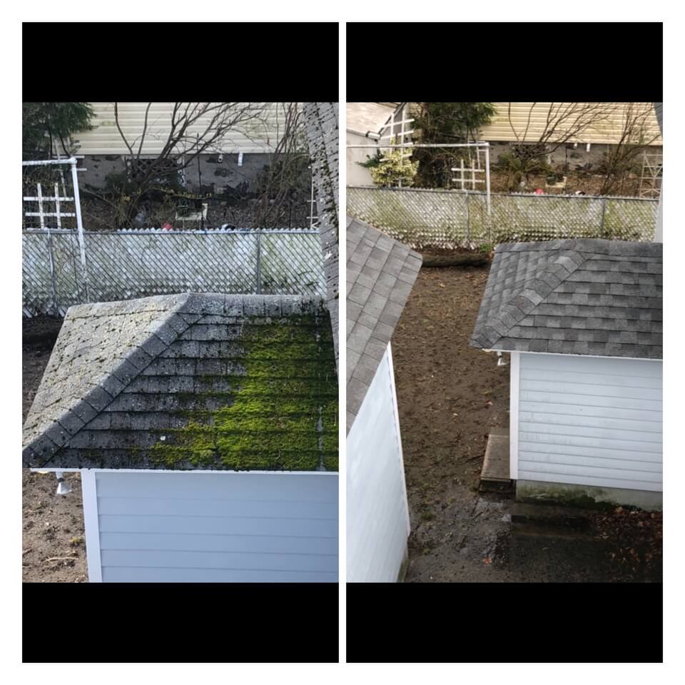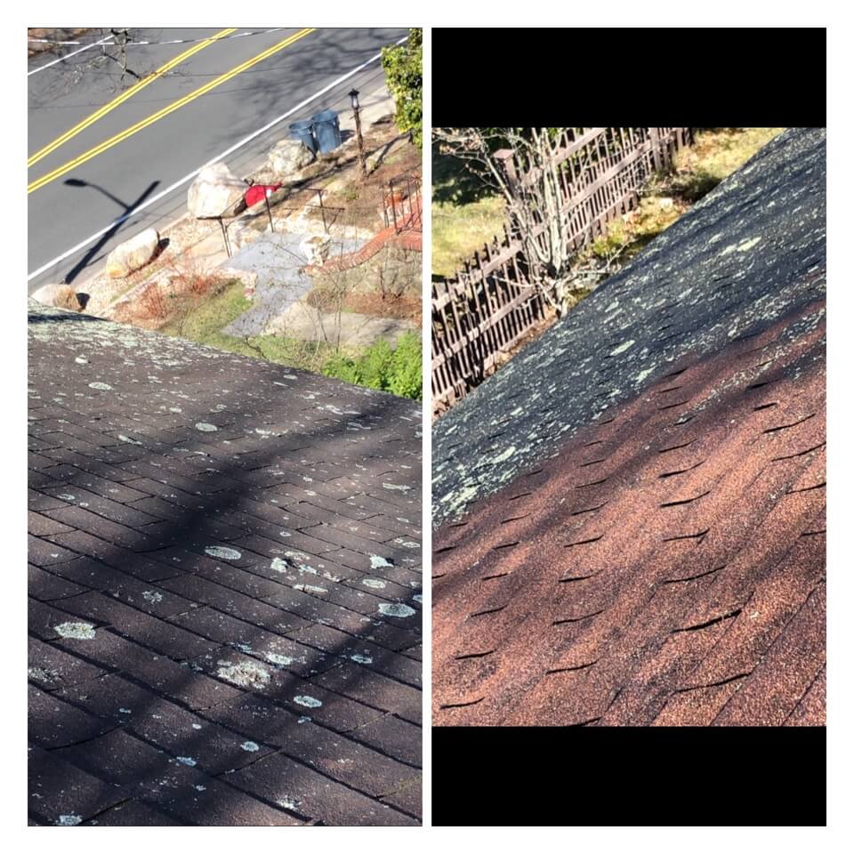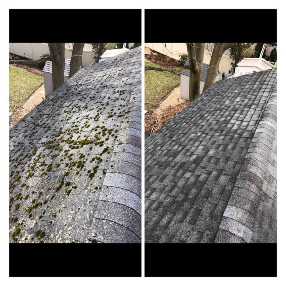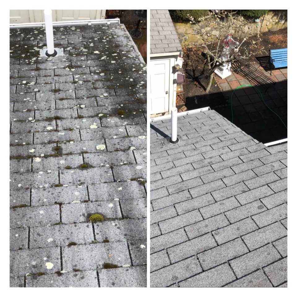 HiCleaners is the most experienced company in Ayer, MA that deals with roof washing and roof soft washing. All of our employees are trained to recognize precise solution mixing ratios to provide you with the safest and most effective soft washing service. Roofs are a commonly neglected part of a house due to the fact that most people don’t have ladders to access it, so it is very easy to just leave it alone and forget about problems that may start to arise. Just like many home owners, discoloration and small bits of moss on a roof can be overlooked because of the misconception that it is just aesthetic. However, it isn’t just aesthetic, the moss slowly lifts the granules off the shingles which in turn shorten the life of the shingle. The moss also spreads, just like any bacteria if it is left alone for too long, it can quickly become a problem that spirals out of control. Call HiCleaners for a free quote, we only use the most advanced eco-friendly solutions and equipment to make sure the job is done right, for the safety of the employees, your plants, grass, pets, and children.